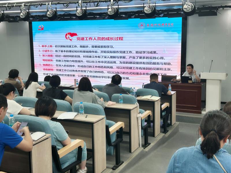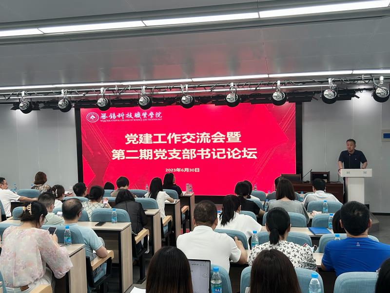 为深入学习贯彻习近平新时代中国特色社会主义思想,落实主题教育先学先行“四学四担当”行动要求,进一步提高基层党组织书记履职尽责能力,夯实基层党建基础,6月30日下午,学校在F211学术报告厅举办了党建交流会暨第二期党支部书记论坛。机关党委、各党总支负责人及组织委员、全体党支部书记及相关委员、党委组织部全体成员参加了此次交流活动。活动由党委组织部部长胡光明主持。